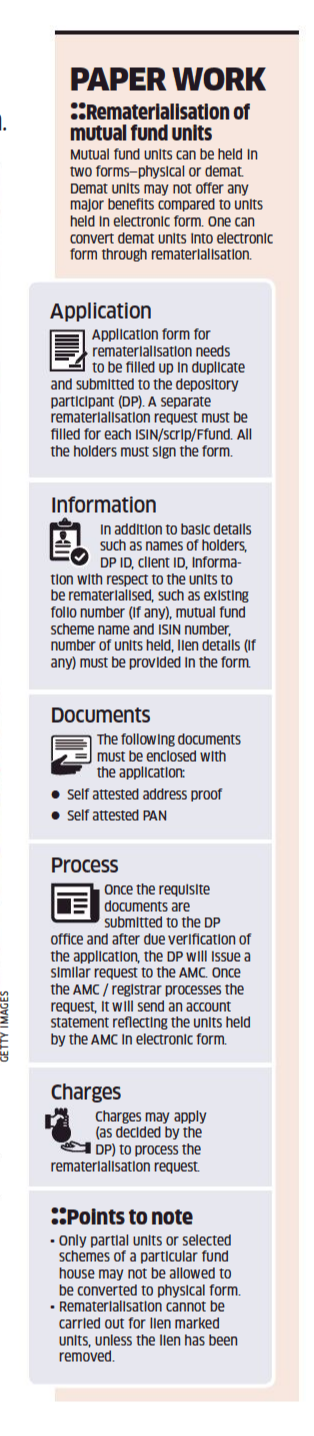 - Units- Investors get units of the mutual fund, for their investment